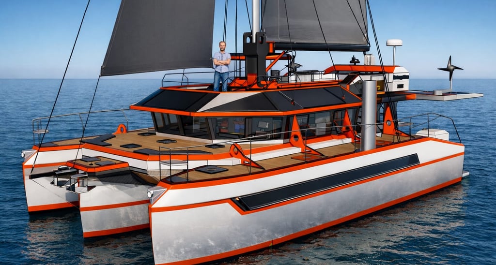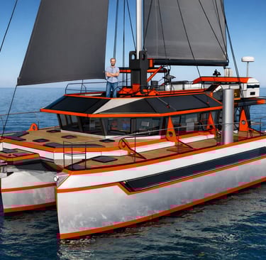 Um trimarã híbrido que une segurança, conforto e mobilidade para navegar ou ancorar onde desejar.